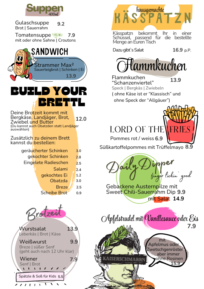 Hier gibt’s das, worauf wir wirklich Bock haben: Allgäuer Schmankerl mit Twist und genau die richtigen Gerichte für zwischendurch. Kaffee & Kuchen? Natürlich auch.